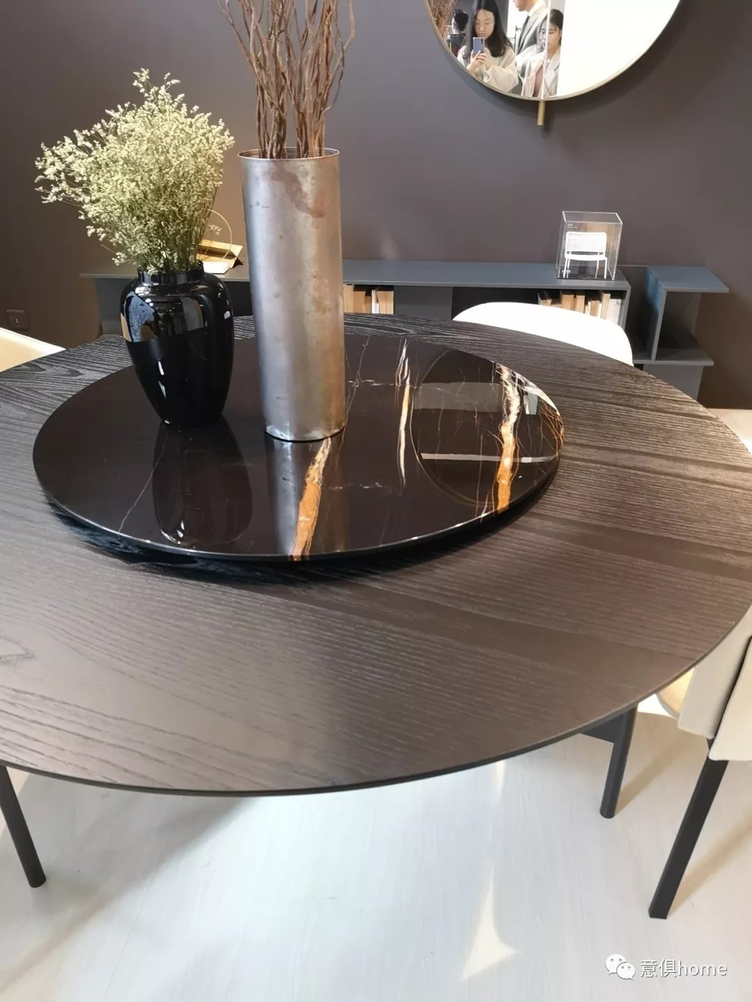 一直以來,我們都認(rèn)為,大理石和金屬是西方專屬符號,而木頭是中式審美的代表,那么當(dāng)這三者相結(jié)合,又會有怎樣的火花呢?采用中式家庭都喜愛的圓桌設(shè)計(jì),用金屬來“切割”堅(jiān)硬厚實(shí)的大理石材質(zhì),并用溫暖木質(zhì)加以潤色。