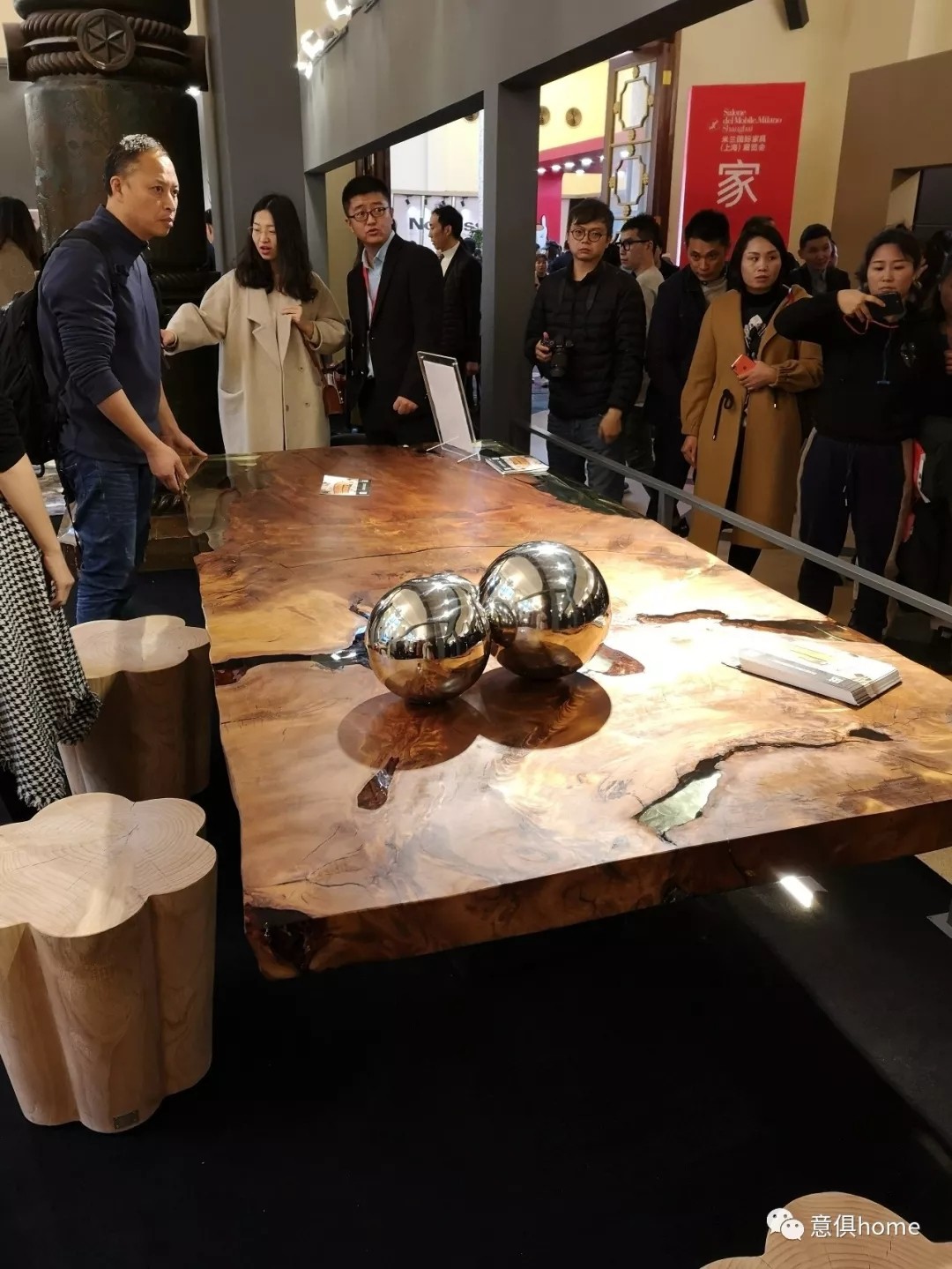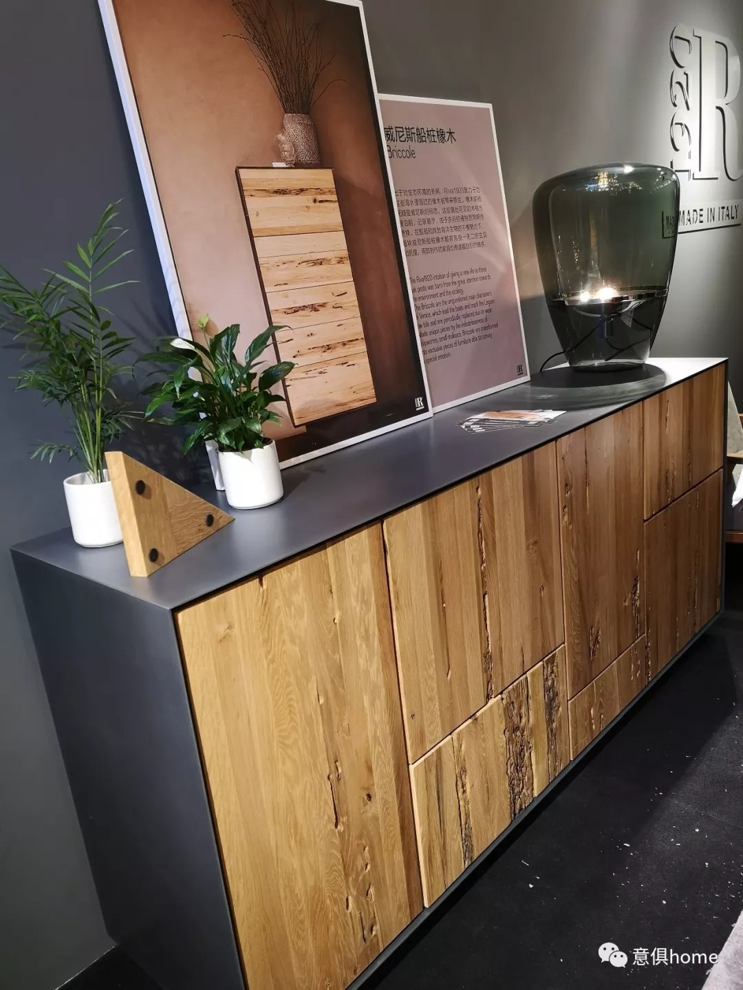 專注于木質(zhì)的品牌RIVA 1920,這次給大家展出了取自不同樹木的家具,RIVA1920選用的木材,皆來自深埋底下上百年的上好木質(zhì),通過工人高超的技術(shù),做成一件件充滿木質(zhì)香氣的家具,藝術(shù)收藏價值頗高。