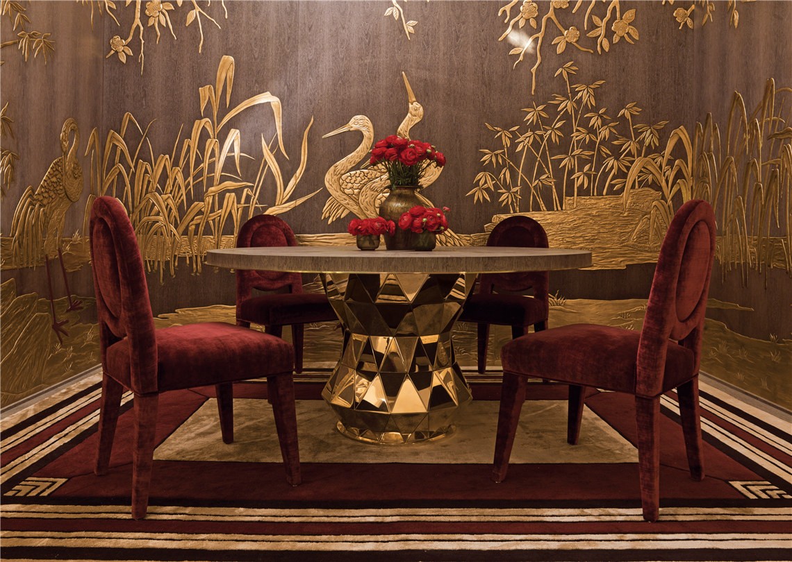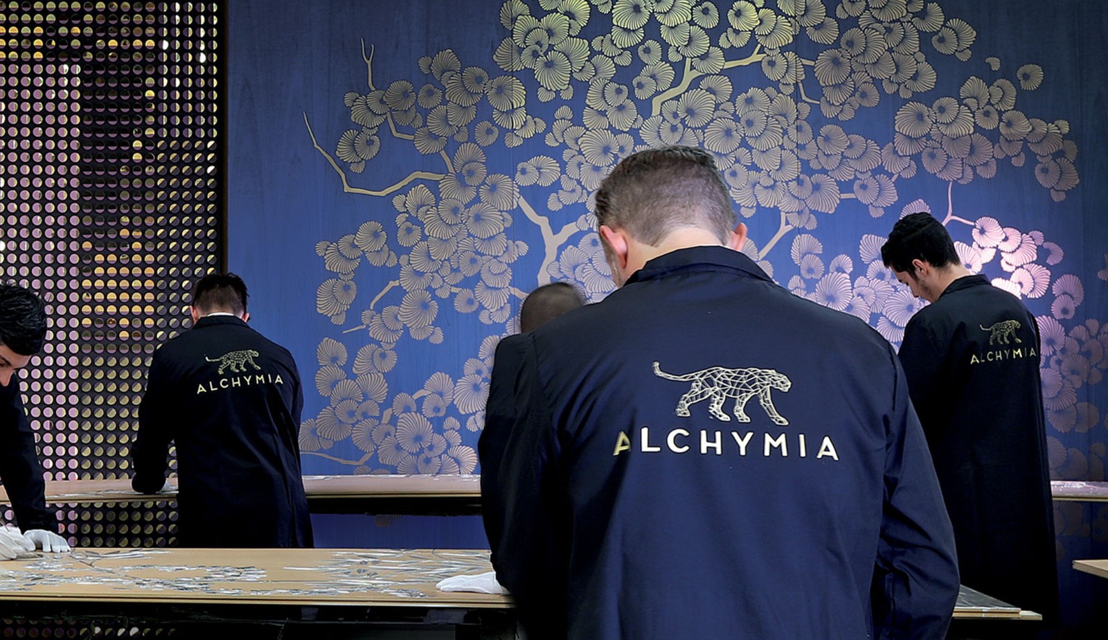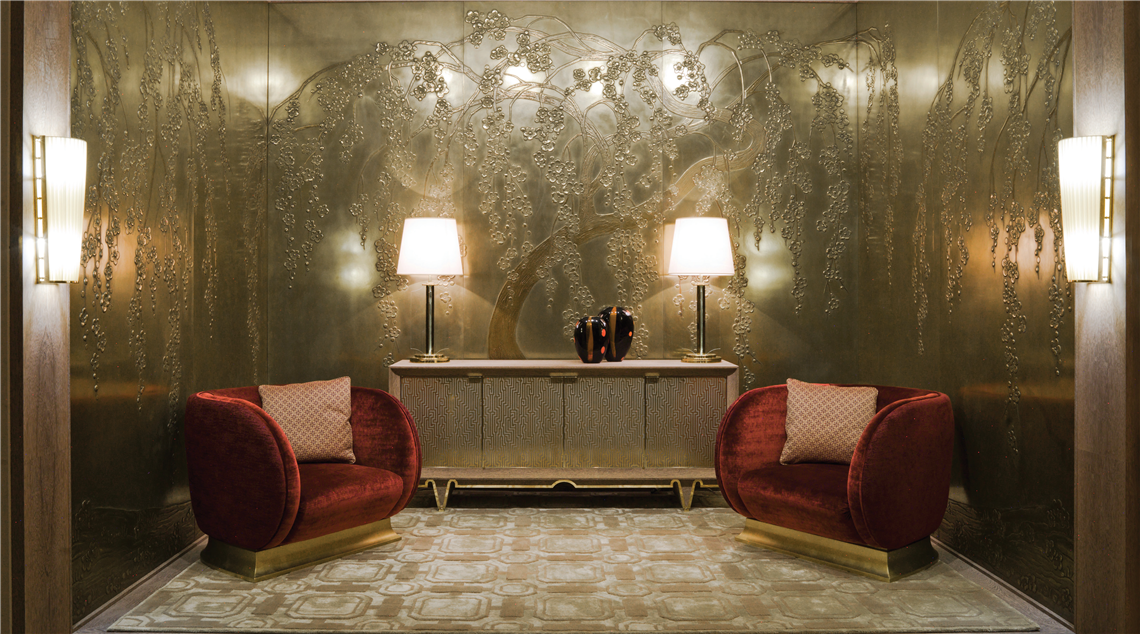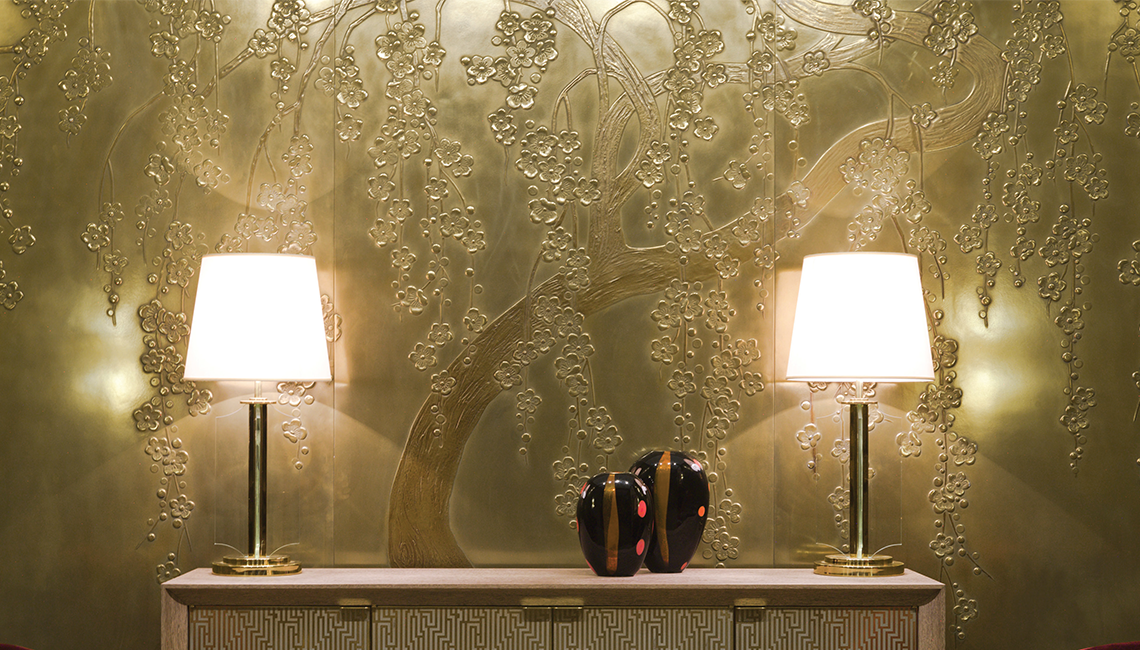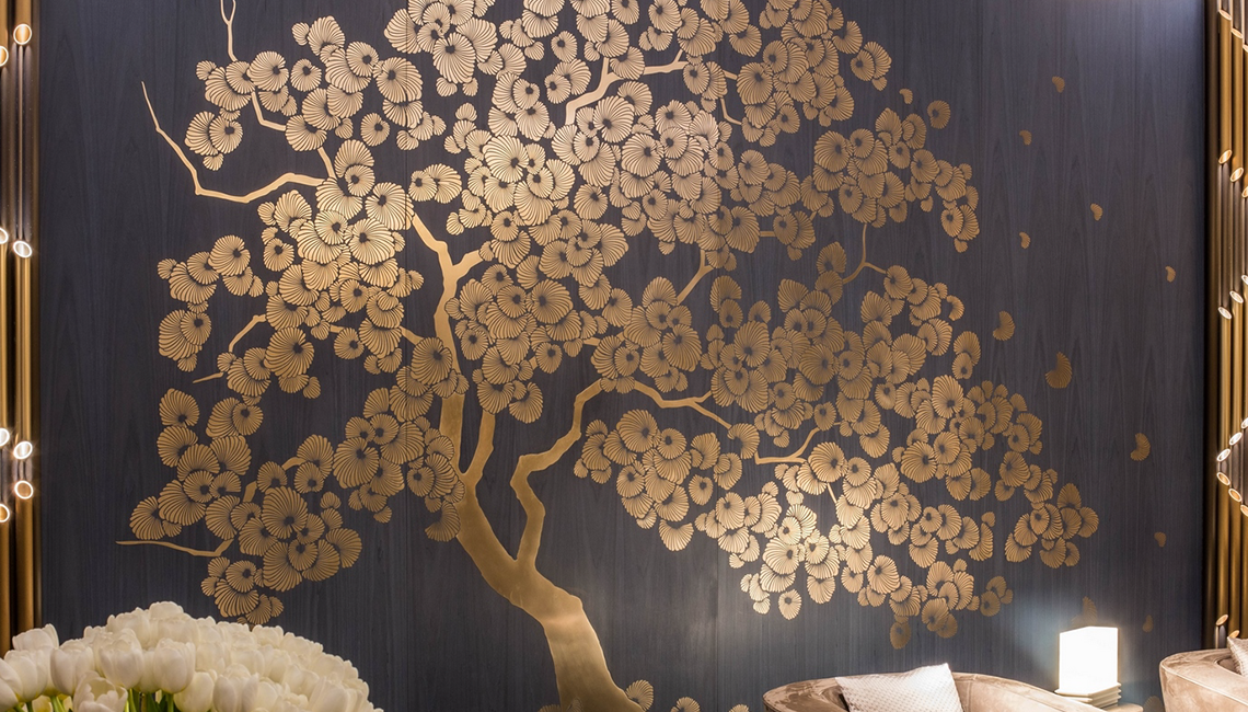 今天要介紹的品牌是由意大利藝術(shù)家Lucio Doro于1977年在意大利北部的Meda創(chuàng)建的裝飾美學(xué)品牌ALCHYMIA(阿基米亞),創(chuàng)始人Lucio Doro研究50年,將煉金術(shù)和東方元素:仙鶴、祥云、梅花、翠竹等,融合在一起,呈現(xiàn)出令人震驚的藝術(shù)裝飾墻,仿佛穿越到了古代宮廷,金碧輝煌,美輪美奐。