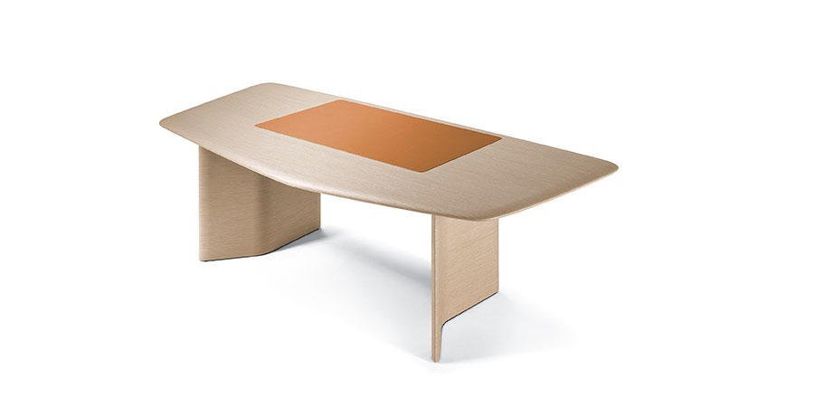 Poltrona Frau 的TRUST書桌,流線型的設計讓桌面看起來更加光滑有質(zhì)感,純木質(zhì)材料搭配上等皮革,顏色的遞進使得書桌看起來高級感十足,凳腳的折疊設計,是整個書桌的亮點。