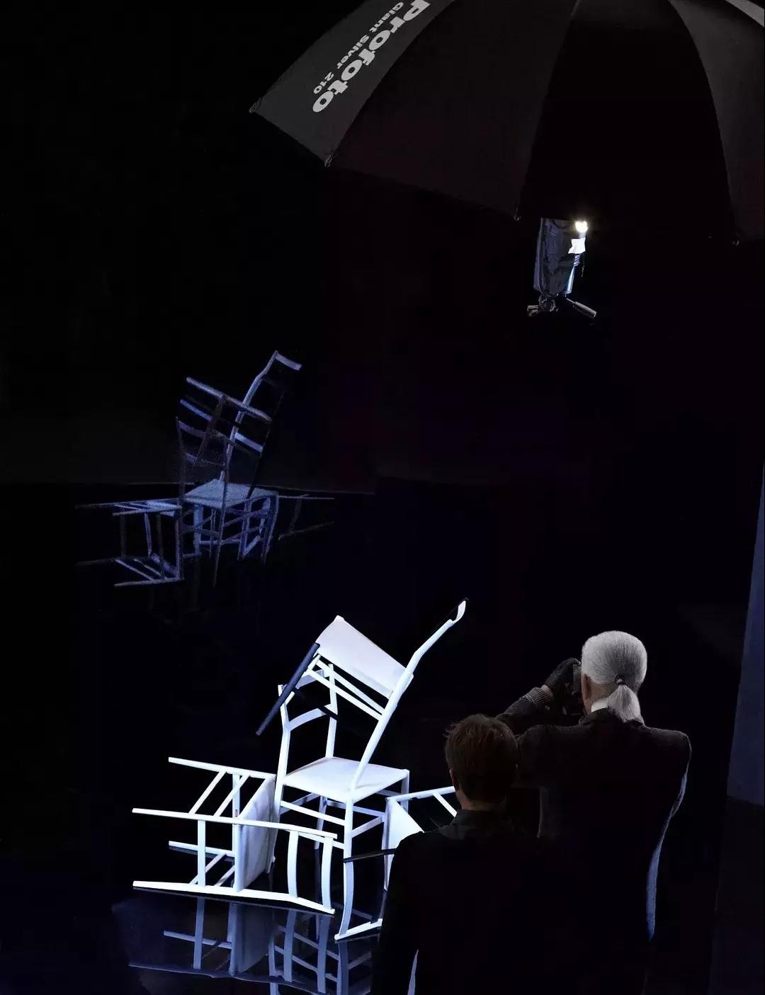 在2013年卡爾與意大利經(jīng)典家具品牌CASSINA的跨界合作上,為其拍攝了一組“家具大片”,以此表達對自己鐘愛的家具的喜愛,以及對設(shè)計大師的致敬。
