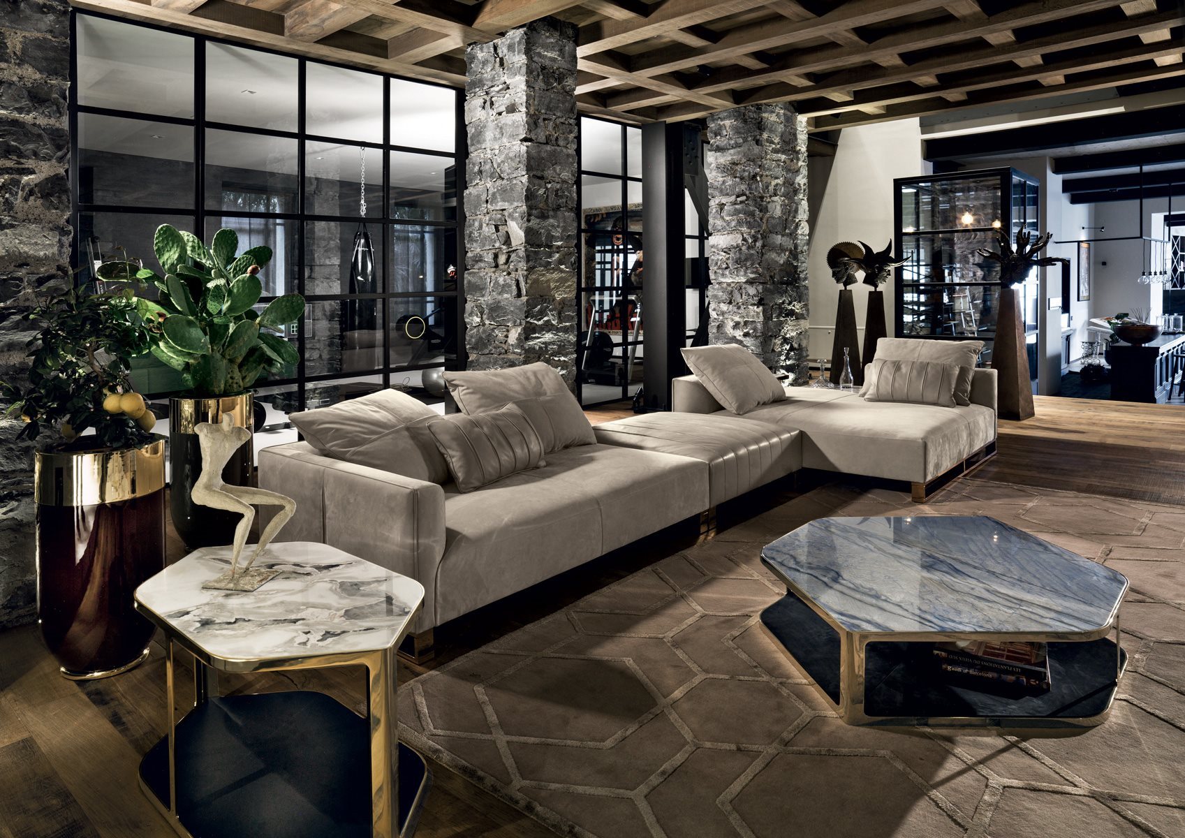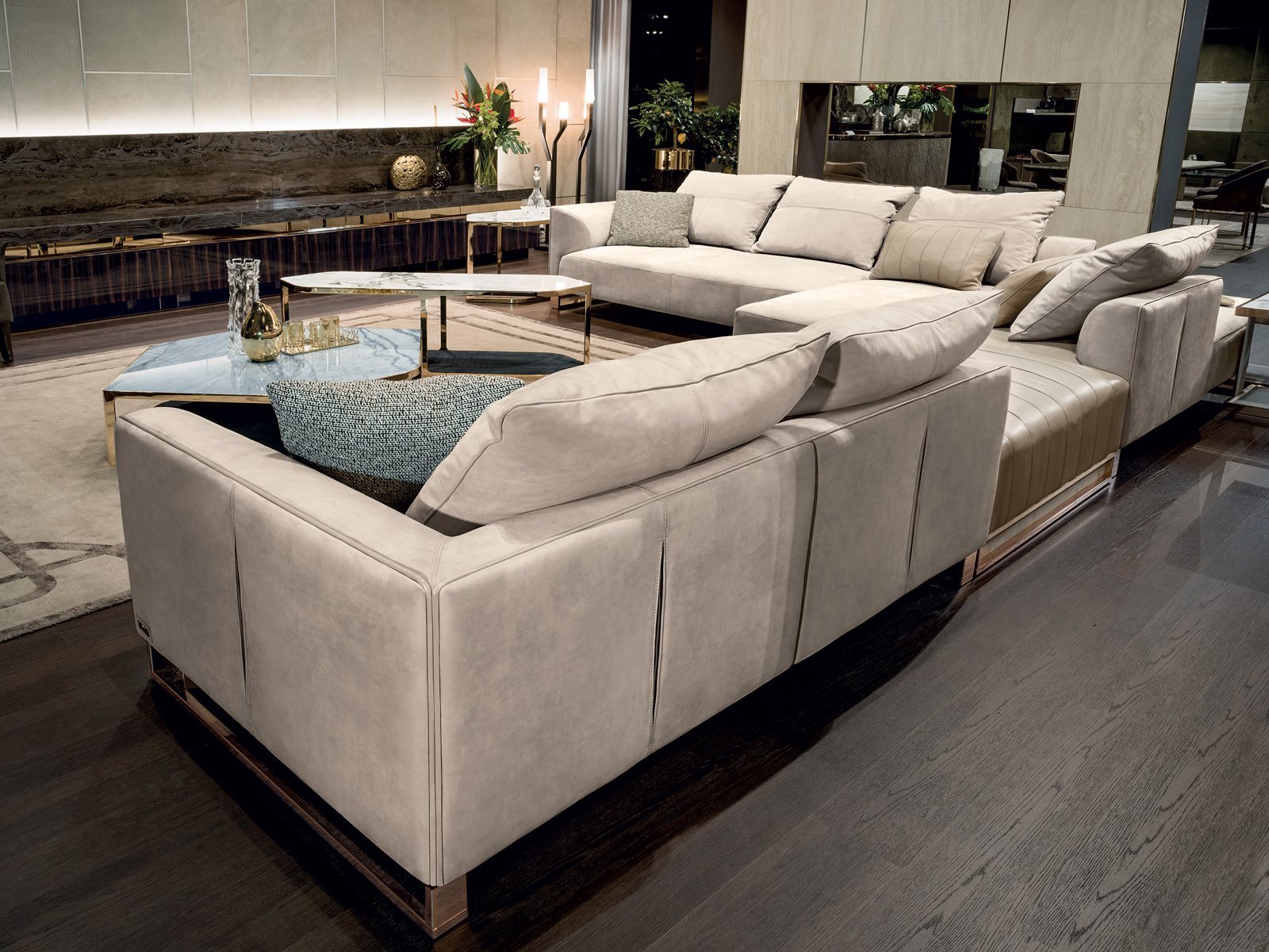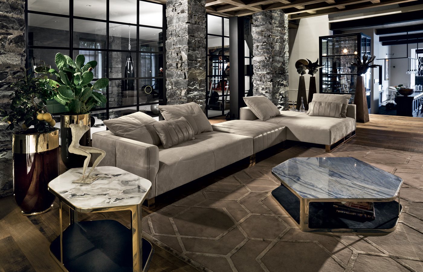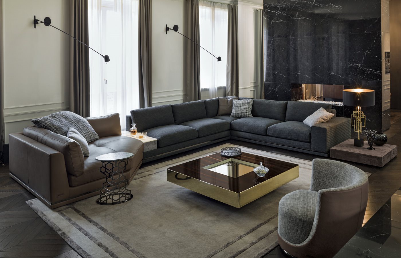 該系列最大的特點(diǎn)就是有兩種不同系列的扶手,一方面是高飽和填充扶手,皮革與布質(zhì)的組合型沙發(fā)更添質(zhì)感,另一方面是瑪瑙調(diào)光石或大理石的嵌入,柔軟與剛硬的相互融合,也增加了使用感。