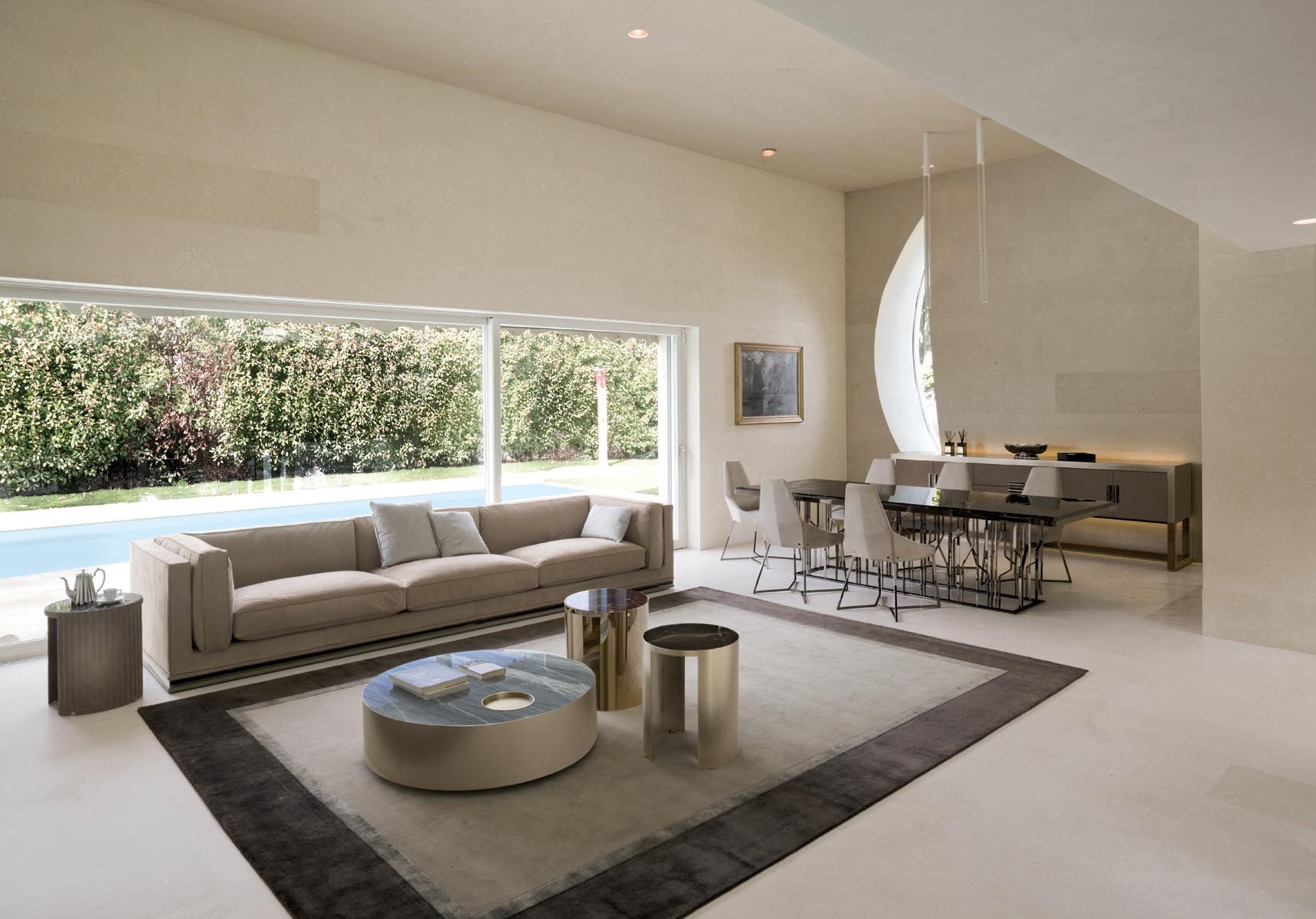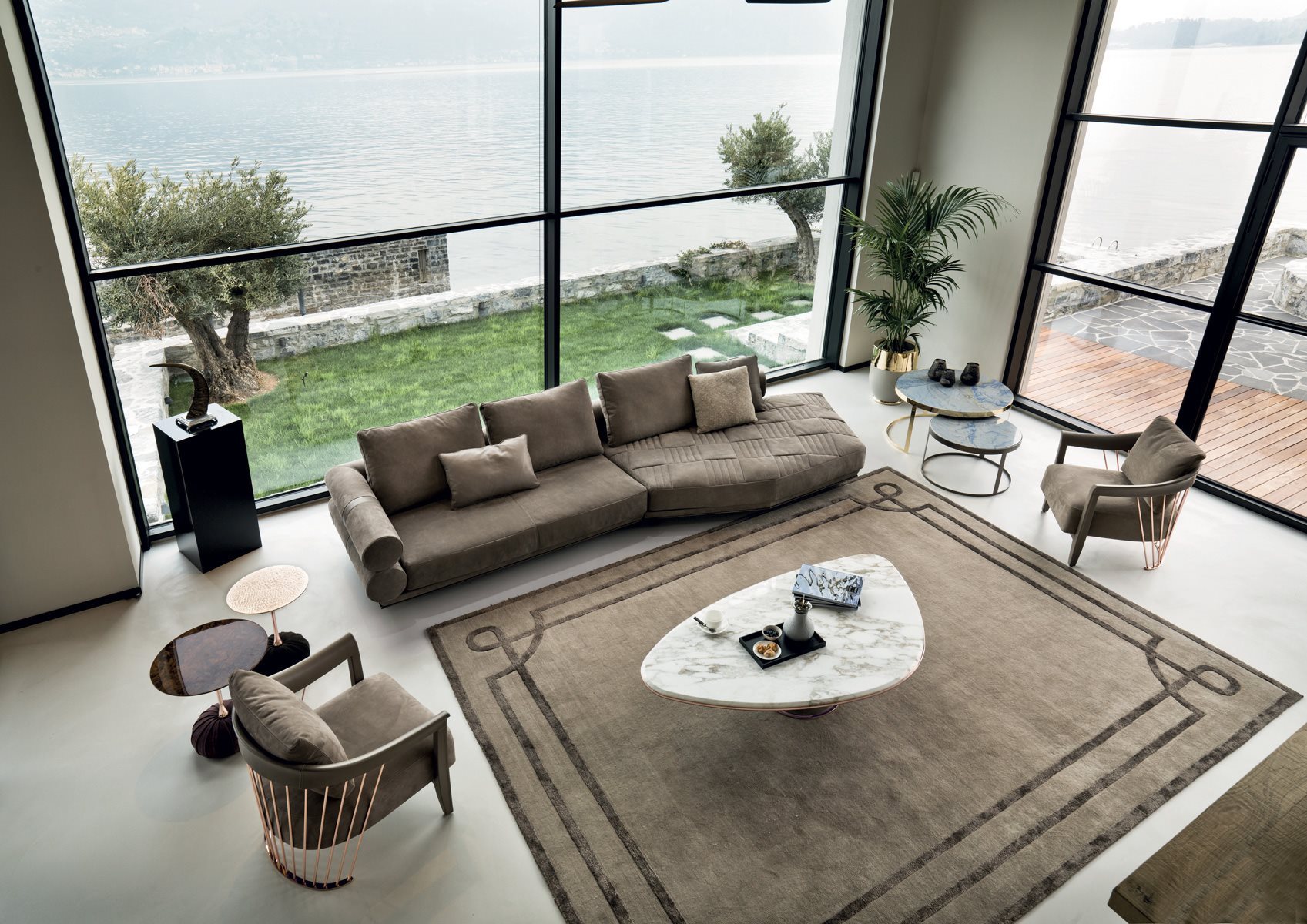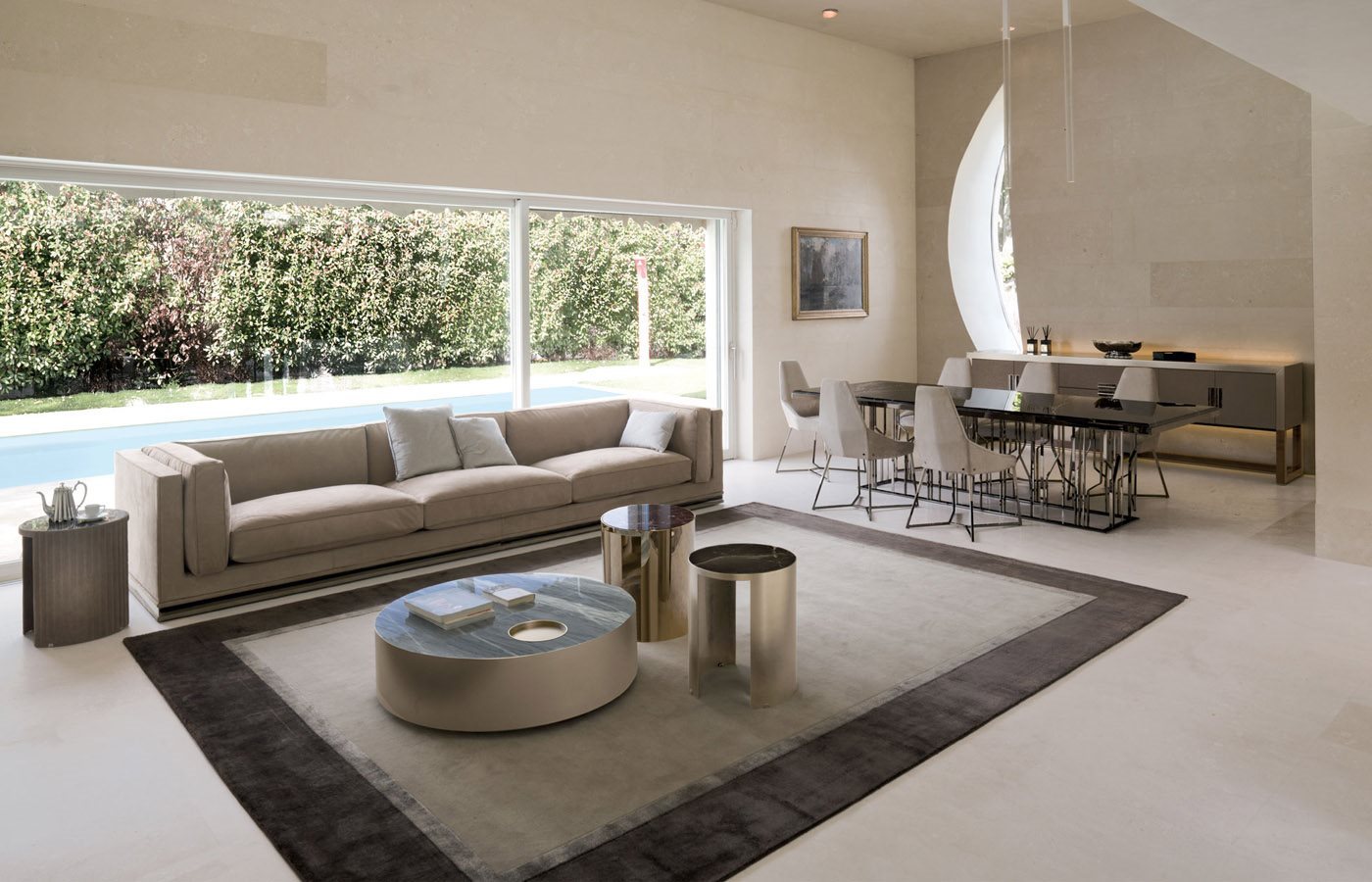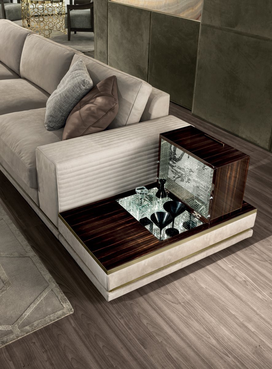 該系列最大的特點(diǎn)就是有兩種不同系列的扶手,一方面是高飽和填充扶手,皮革與布質(zhì)的組合型沙發(fā)更添質(zhì)感,另一方面是瑪瑙調(diào)光石或大理石的嵌入,柔軟與剛硬的相互融合,也增加了使用感。