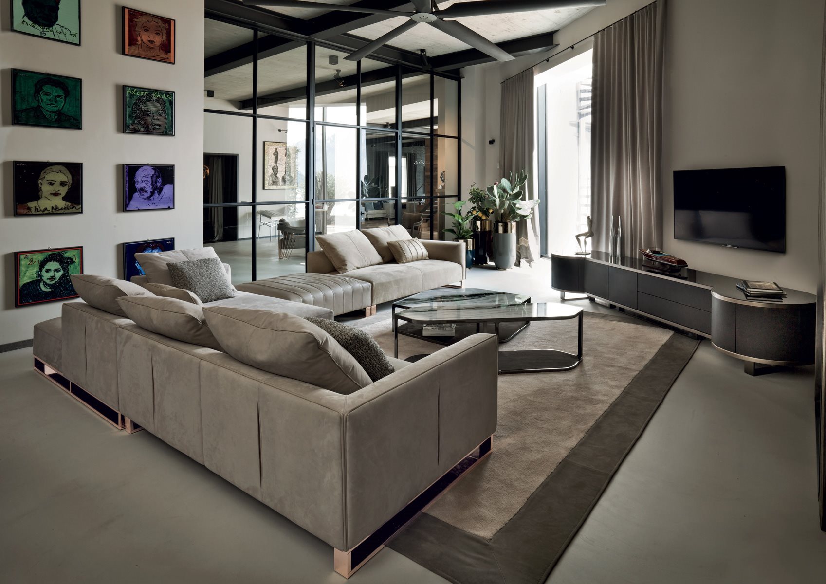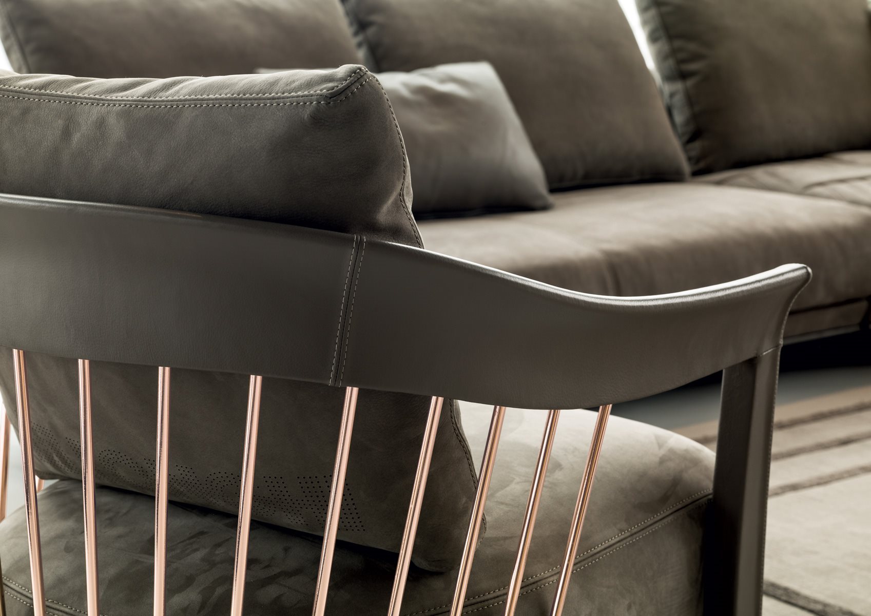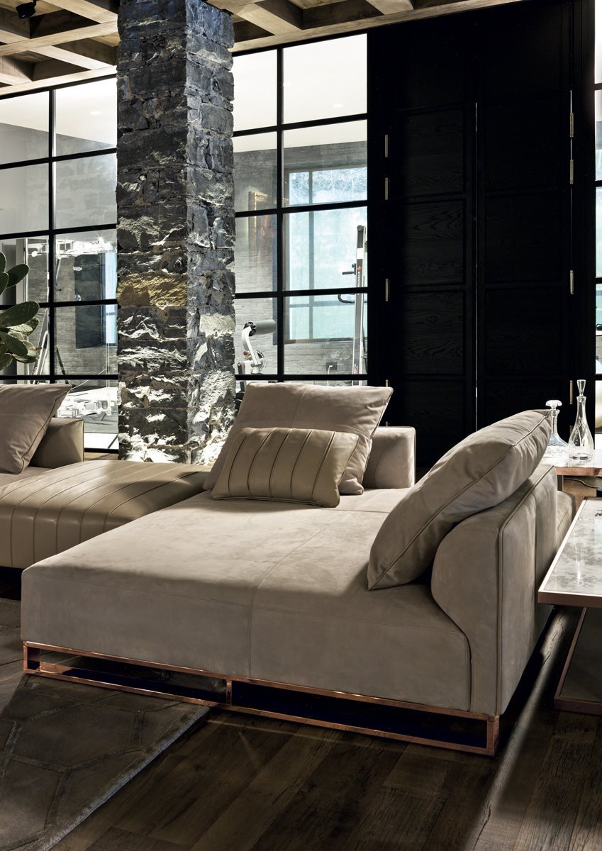 OPPENHEIM是一種允許多種家具組合的模塊化沙發(fā),可塑性非常強(qiáng),特點(diǎn)是雙圓柱形靠背,皮帶顏色與沙發(fā)的其余部位形成了色彩對(duì)比,增添了一絲優(yōu)雅獨(dú)特的氣質(zhì)。