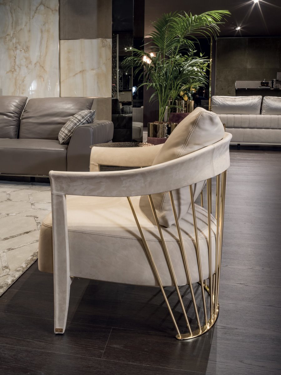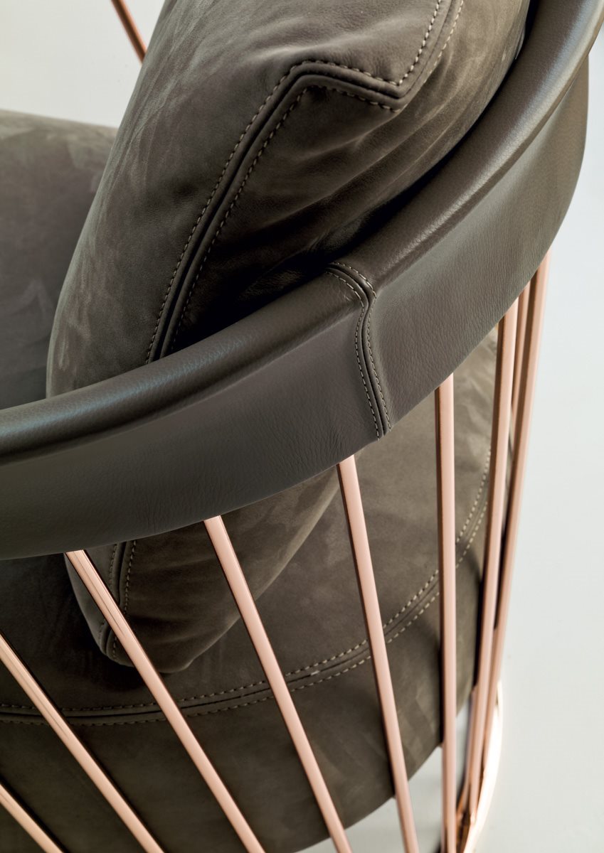 這也是LONGHI的新品,Dorothy扶手椅最大的特點(diǎn)就是金屬靠背采用激光切割框架和金屬管制成,并采用手工制作。座椅采用木材和聚氨酯泡沫塑料, 靠背飾面則采用無菌鵝絨。