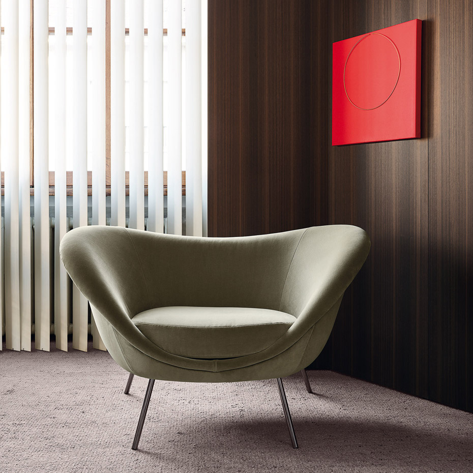 這條扶手椅,這最適合設(shè)計師GIO PONTI內(nèi)心世界的設(shè)計,它的外觀就像一個舒服的“殼”,舒適的軟質(zhì)聚氨酯內(nèi)框架和座墊,將人包裹起來,充滿時尚感的造型和線條,適合擺放在家里的任何位置。