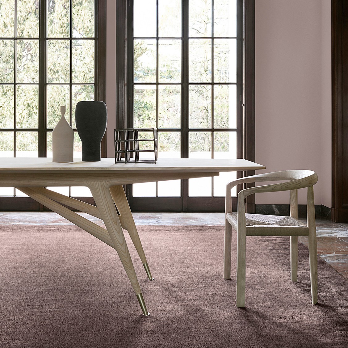 淺色或深色實(shí)木簡單的線條描繪,桌腳用黃銅包裹更具優(yōu)雅。