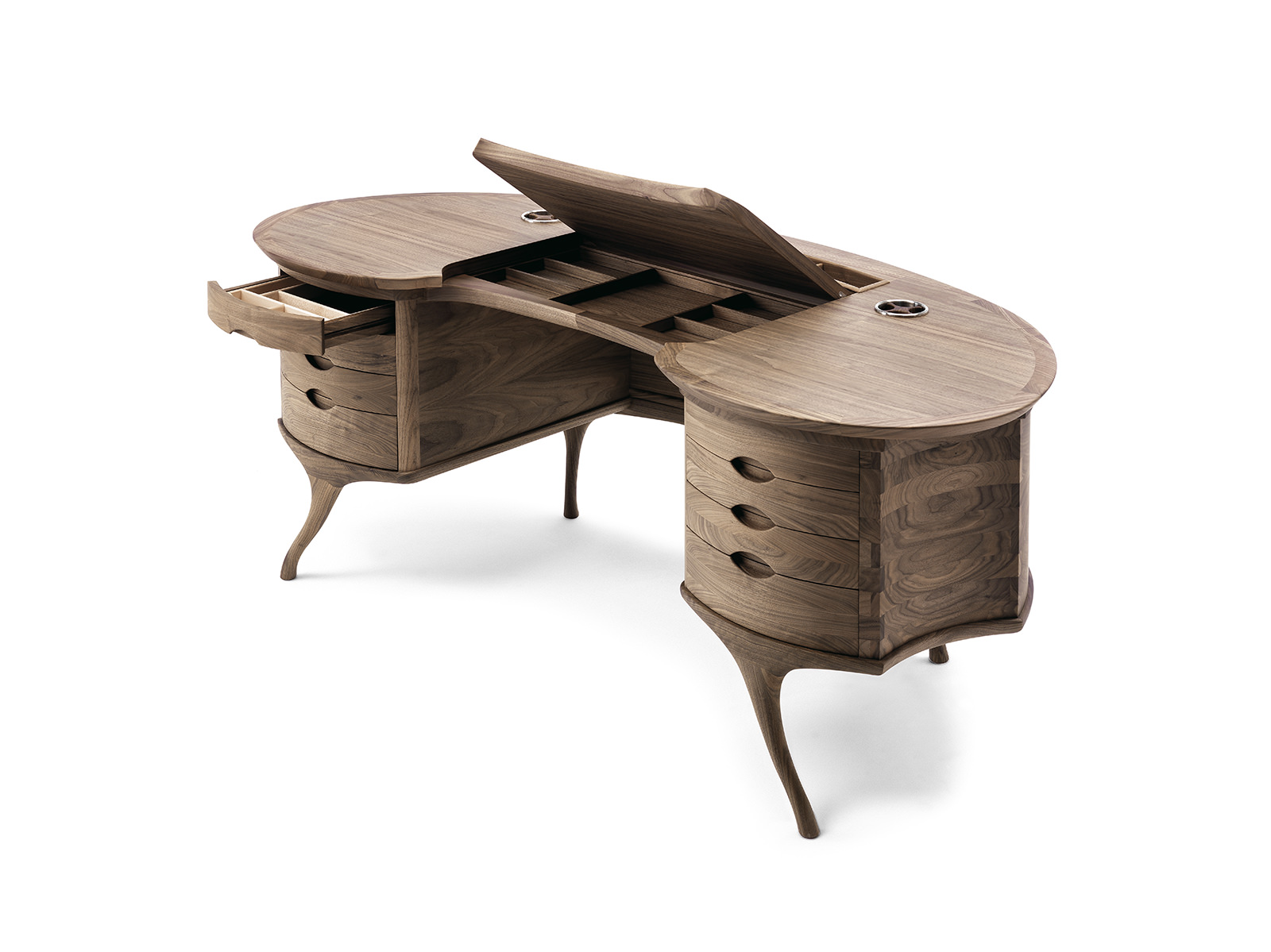 Lazzeroni設(shè)計(jì)的豌豆桌是Ceccotti Collezioni最有代表性的作品,它完全傳遞出了品牌與眾不同的核心力。一件桌子由346件各自不同的實(shí)木部件組成,全部的部件都使用榫卯連接,沒(méi)有一顆釘子。它對(duì)手工藝的要求極高,一年的產(chǎn)量不會(huì)高于六十件。線條優(yōu)美兼具分類收納功能,是手工之作的典范。