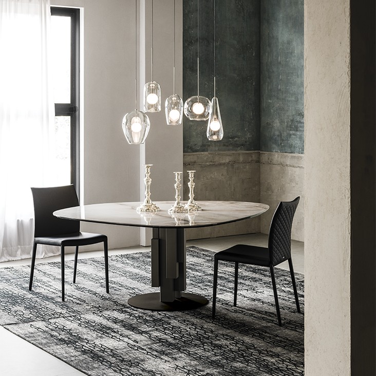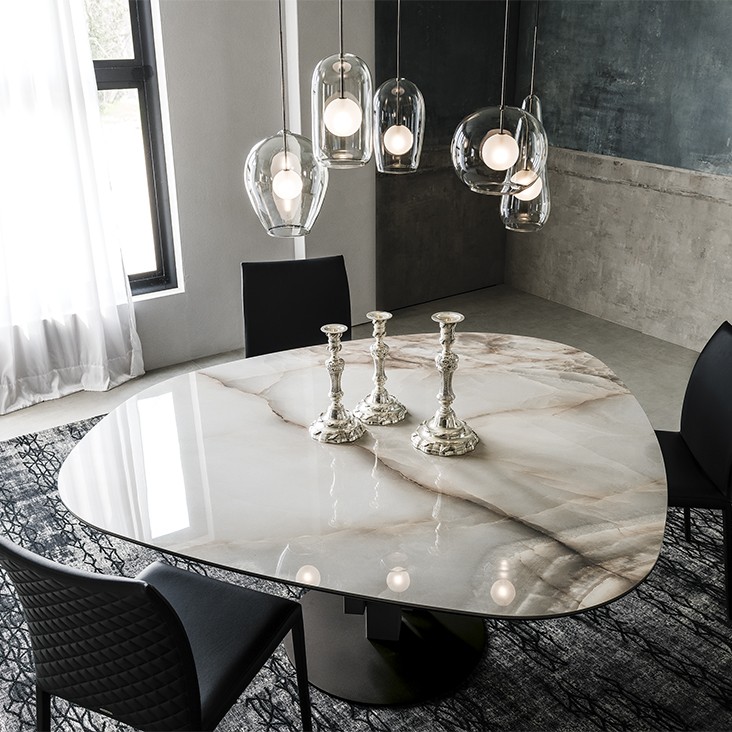 SKYLINE KERAMIK ROUND 餐桌用不規(guī)則的人造大理石營造了用餐的儀式感,鈦漆面底座充滿了工業(yè)風(fēng)的味道。這不是傳統(tǒng)概念里闔家團圓時餐桌的樣子,卻是懂得浪漫的人最佳的選擇。