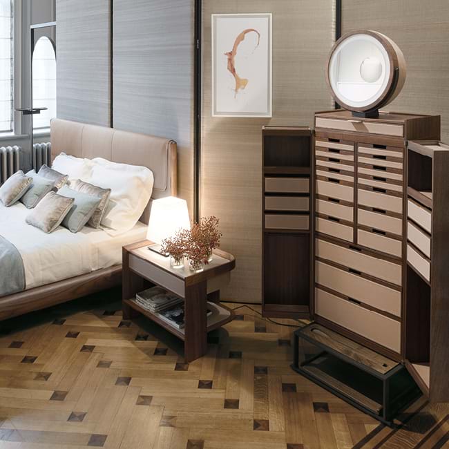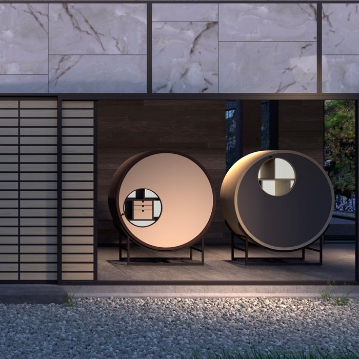 2012年盧志榮先生成立了自己的意大利家具品牌DIMENSIONE CHI WING LO,在這個(gè)品牌里更多體現(xiàn)的是東方的精神內(nèi)核和西方的匠心工藝的融合。像ONAR柜子就采用了中國(guó)水墨畫特有的“散點(diǎn)透視”構(gòu)圖方式。隨著柜門的旋轉(zhuǎn),柜子顯露出其內(nèi)部不同的格局,被大家稱為“神奇的柜子”。