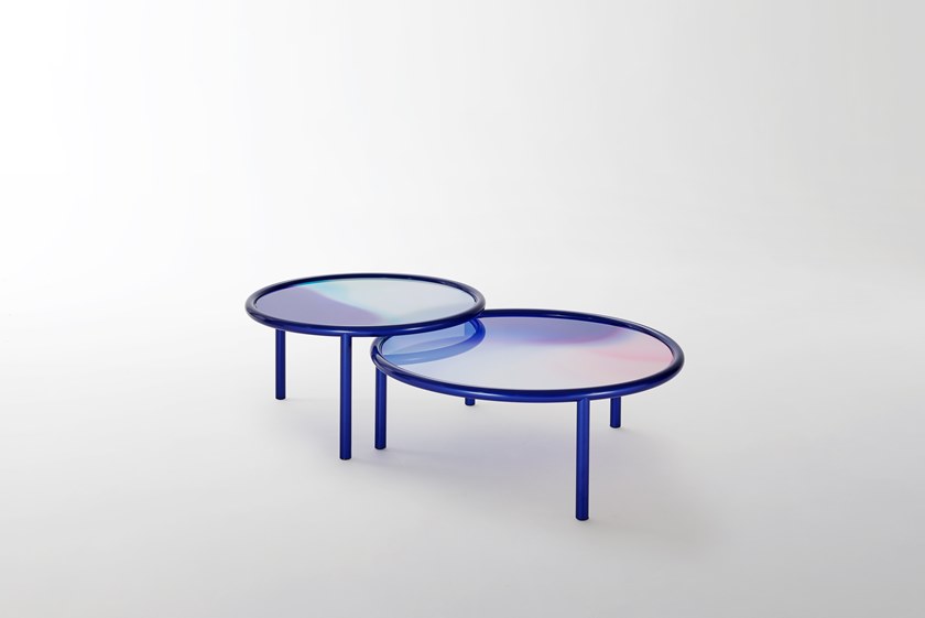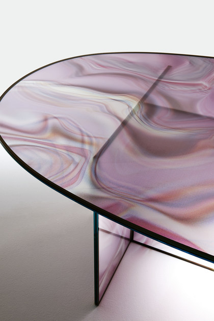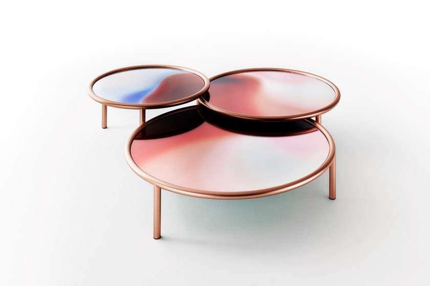 乍看L.A SUNSET茶幾時,很難想象這是玻璃材質(zhì)的。桌子的結(jié)構(gòu)是圓形金屬管,在玻璃面上涂著夜藍(lán)漆或不透明金屬飾面銅漆,使玻璃層面看起來像液體一樣。現(xiàn)代化極簡的風(fēng)格加上別具一格的設(shè)計,提升空間的質(zhì)感。