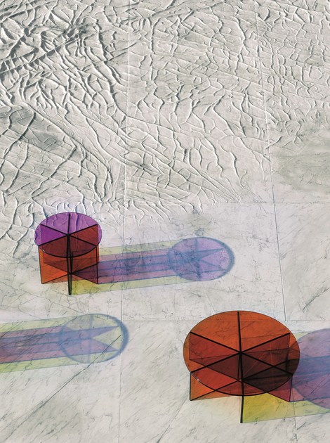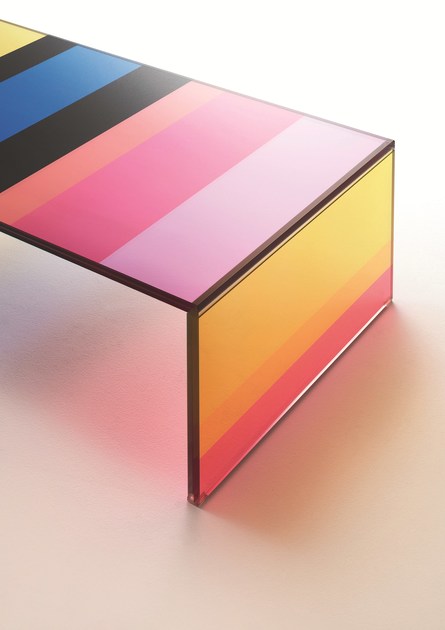 Dark side of the moon 系列是高低桌的集合。色彩能把日常平庸之物都變得耐人尋味,像這款看似結(jié)構(gòu)簡單的彩色條帶桌子,就有著萬花筒般視覺效果。這個系列也是Glas Italia最暢銷的產(chǎn)品之一。