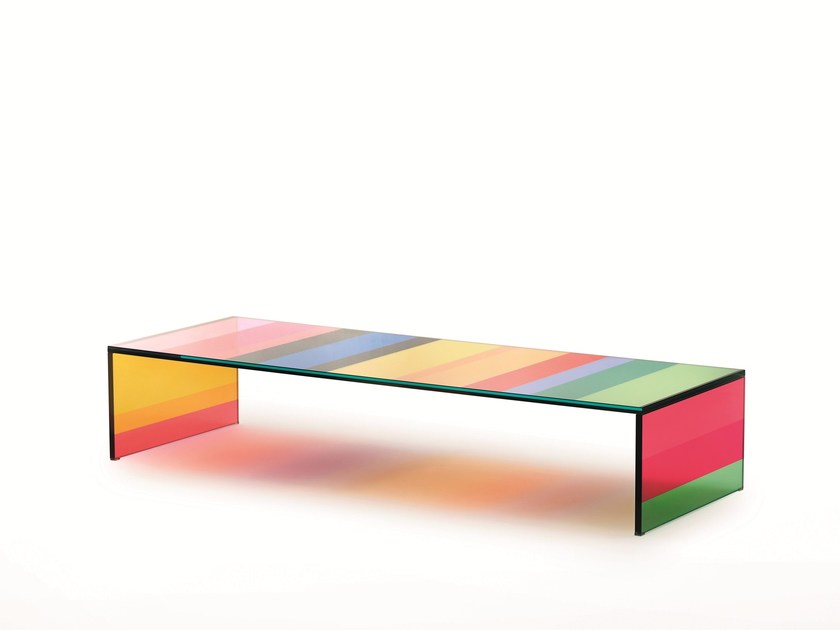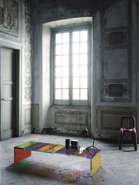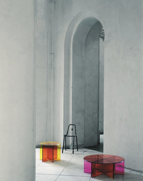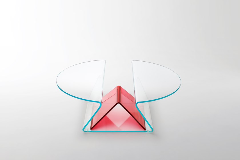Glas Italia的明星產(chǎn)品XXX茶幾的結(jié)構(gòu)像它的名字一樣,是由三個X構(gòu)成的。粉橙黃的顏色搭配加上透明的材質(zhì),讓它在陽光下變成了一道美麗的風(fēng)景線。