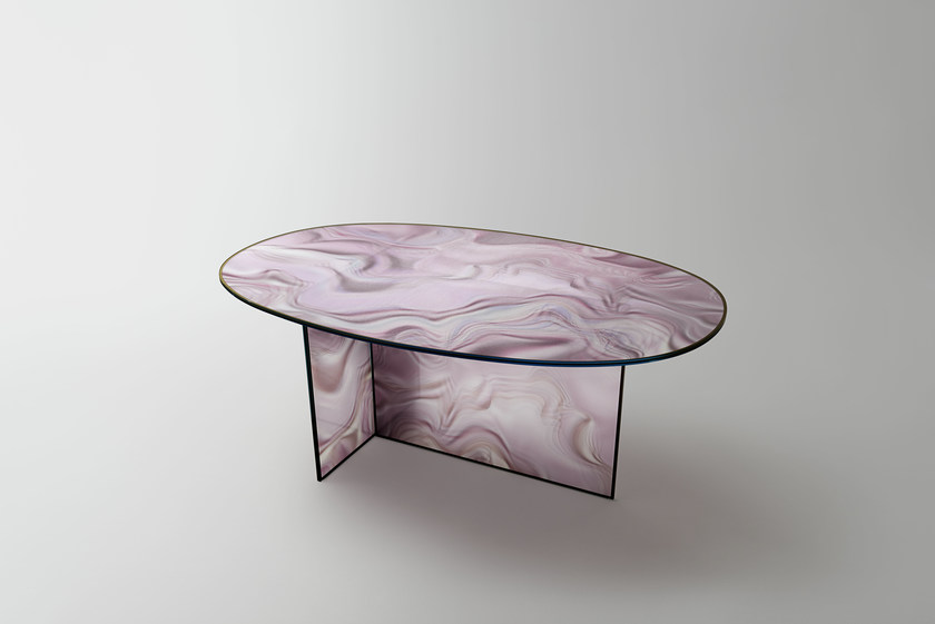 SHIMMER茶幾有著夕陽一般的美貌。特殊的多色晶體飾面,在陽光的照射下呈現(xiàn)紫粉漸變、黃綠漸變和藍(lán)紫漸變,有著夢幻的視覺效果。
