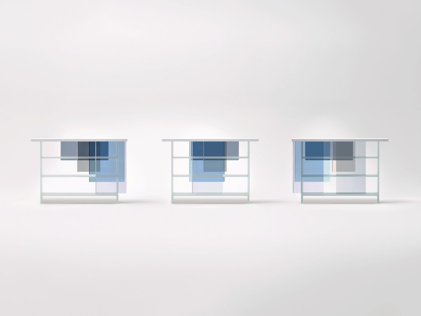 為了紀(jì)念包豪斯100周年,意大利頂級玻璃家具設(shè)計品牌Glas Italia,以紅黃藍(lán)的“大教堂”玻璃為創(chuàng)作靈感,設(shè)計了SHERAZADE PATCHWORK滑動門,以此向蒙德里安致敬。