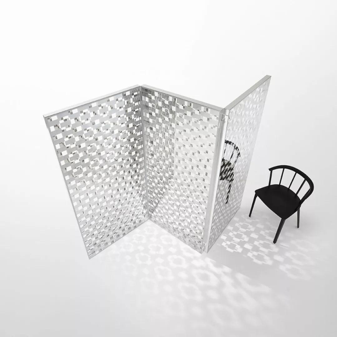 純色的玻璃家具往往更考驗(yàn)工藝和細(xì)節(jié)的處理,這款FRAGMENT屏風(fēng)在簡約大氣的外表下,藏匿著鏤空方塊的細(xì)膩感。光照方向的變化,可呈現(xiàn)出幾何方塊或是花朵的影子,為這款屏風(fēng)注入了有趣的靈魂。