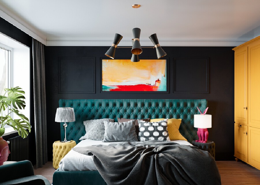 在臥室的設(shè)計(jì)中總會出現(xiàn)藍(lán)色的身影,自帶安靜濾鏡的它,是最助眠的顏色。大片的道奇藍(lán)十分富有戲劇性,藍(lán)色花邊的燈和抱枕讓空間看起來和諧統(tǒng)一。點(diǎn)綴的粉色色塊讓空間呈現(xiàn)了不同折面的裝飾效果,同時(shí)也為過于理性的藍(lán)色增加了感性色彩。