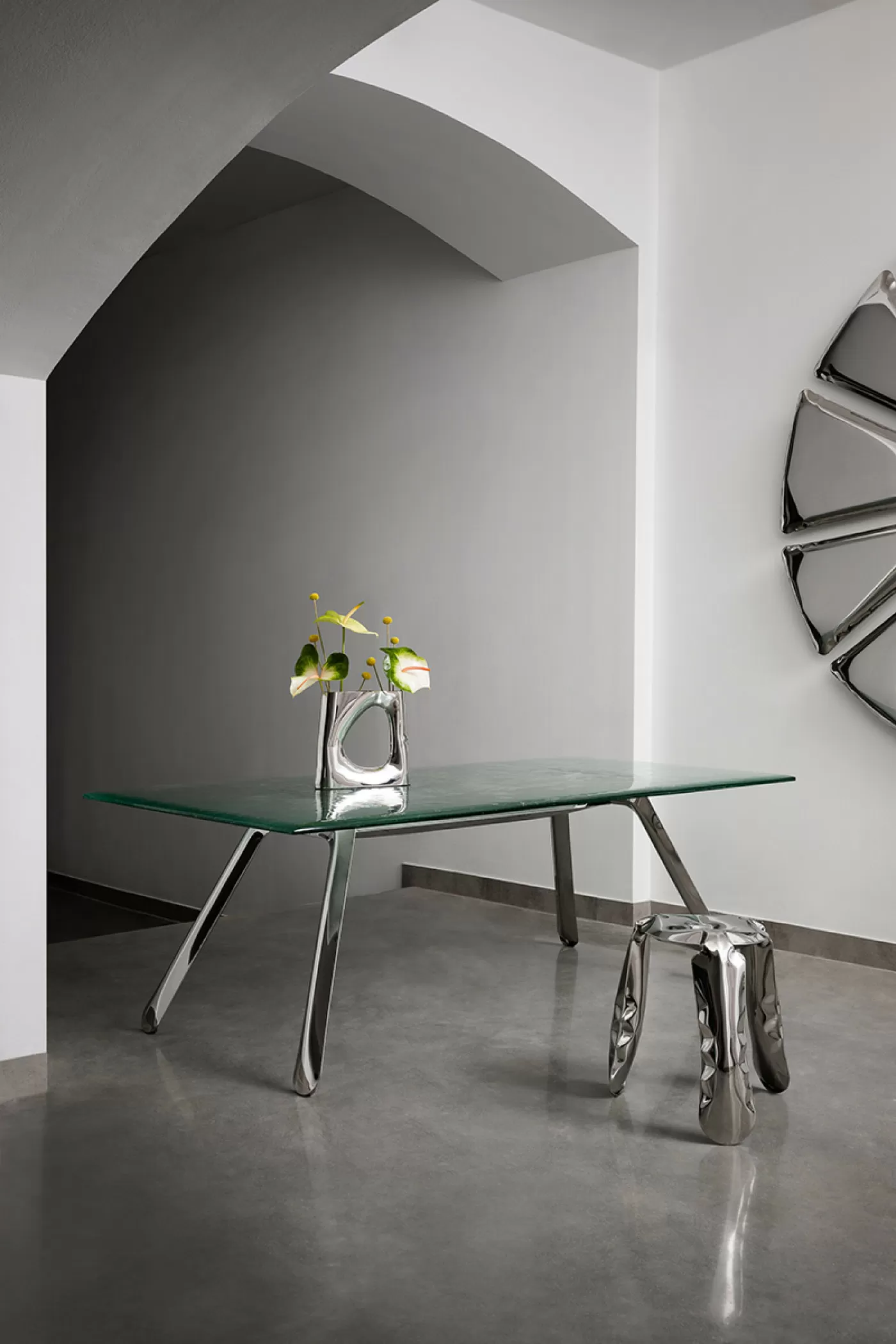 The PLOPP stool is a flagship of Zieta Studio and a symbol of Oskar Zi?ta’s research into the properties and possibilities of metal. The “Polish Air-Pumped Folk Object” proves how the artistic aspects of the design can be summarized in highly advanced engineering forms. Winner of the Red Dot Design Award 2008, the German Design Council Award 2008, and the Forum AID Award 2009. PLOPP is a manifesto of the FiDU technology and the “controlled loss of control” process. Two ultra-thin steel sheets are welded together around their edges and inflated under high pressure, deforming a 2.5D flat form into a 3D object.