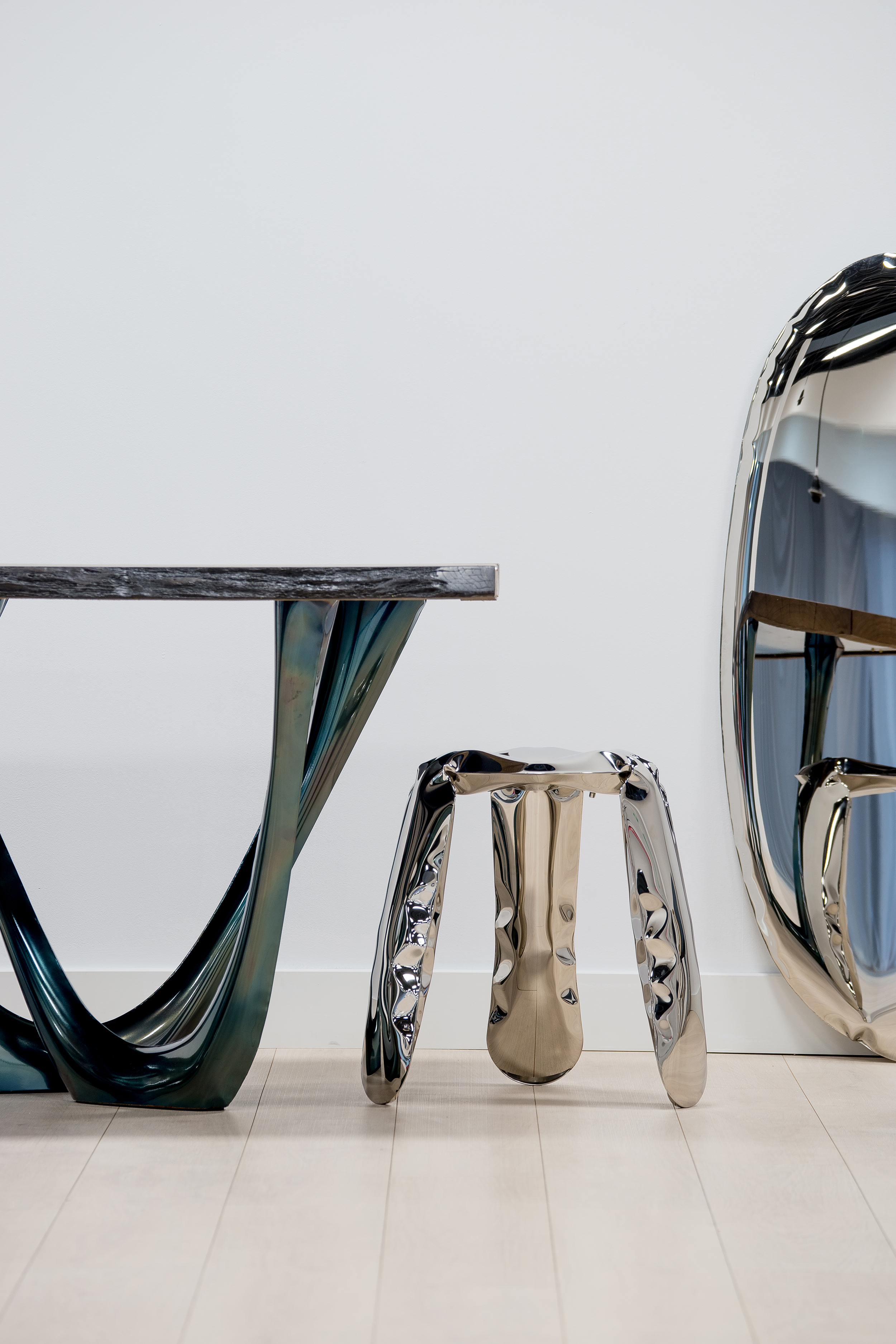The PLOPP stool is an original, iconic object made in FiDU. It is a flagship of Zieta Studio and a symbol of Oskar Zi?ta’s research into the properties and possibilities of metal. The “Polish Air-Pumped Folk Object” proves how the artistic aspects of the design can be summarized in highly advanced engineering forms. Winner of the Red Dot Design Award 2008, the German Design Council Award 2008, and the Forum AID Award 2009. PLOPP is a manifesto of the FiDU technology and the “controlled loss of control” process. Two ultra-thin steel sheets are welded together around their edges and inflated under high pressure, deforming a 2.5D flat form into a 3D object.