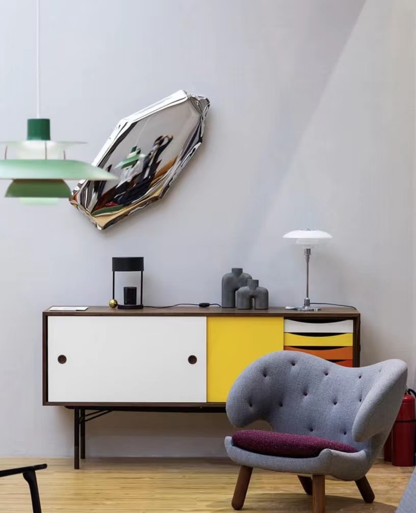 TAFLA C is an avant-garde interpretation of a drop of water. Objects from the C series have expressive, characteristic contours that provoke the senses and reflections of light. The irregular deformation at the edges is unique because it is caused by the free deformation of the metal under air pressure. These are stories about reflections, and stories of reflections in individual objects and constellations.