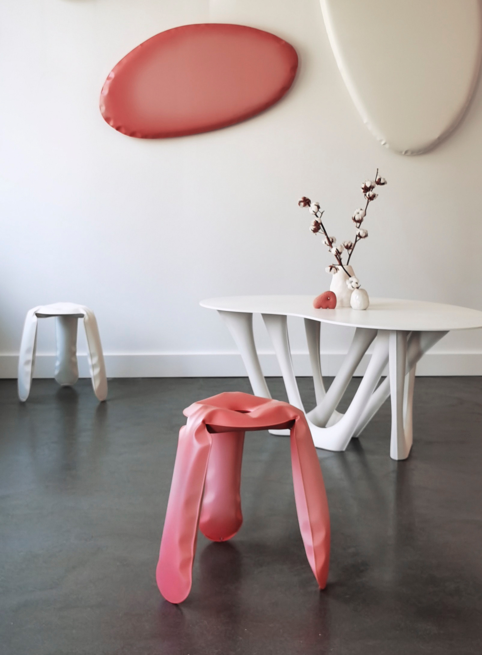 The PLOPP stool is an original, iconic object made in FiDU. It is a flagship of Zieta Studio and a symbol of Oskar Zi?ta’s research into the properties and possibilities of metal. The “Polish Air-Pumped Folk Object” proves how the artistic aspects of the design can be summarized in highly advanced engineering forms. Winner of the Red Dot Design Award 2008, the German Design Council Award 2008, and the Forum AID Award 2009. PLOPP is a manifesto of the FiDU technology and the “controlled loss of control” process. Two ultra-thin steel sheets are welded together around their edges and inflated under high pressure, deforming a 2.5D flat form into a 3D object.
