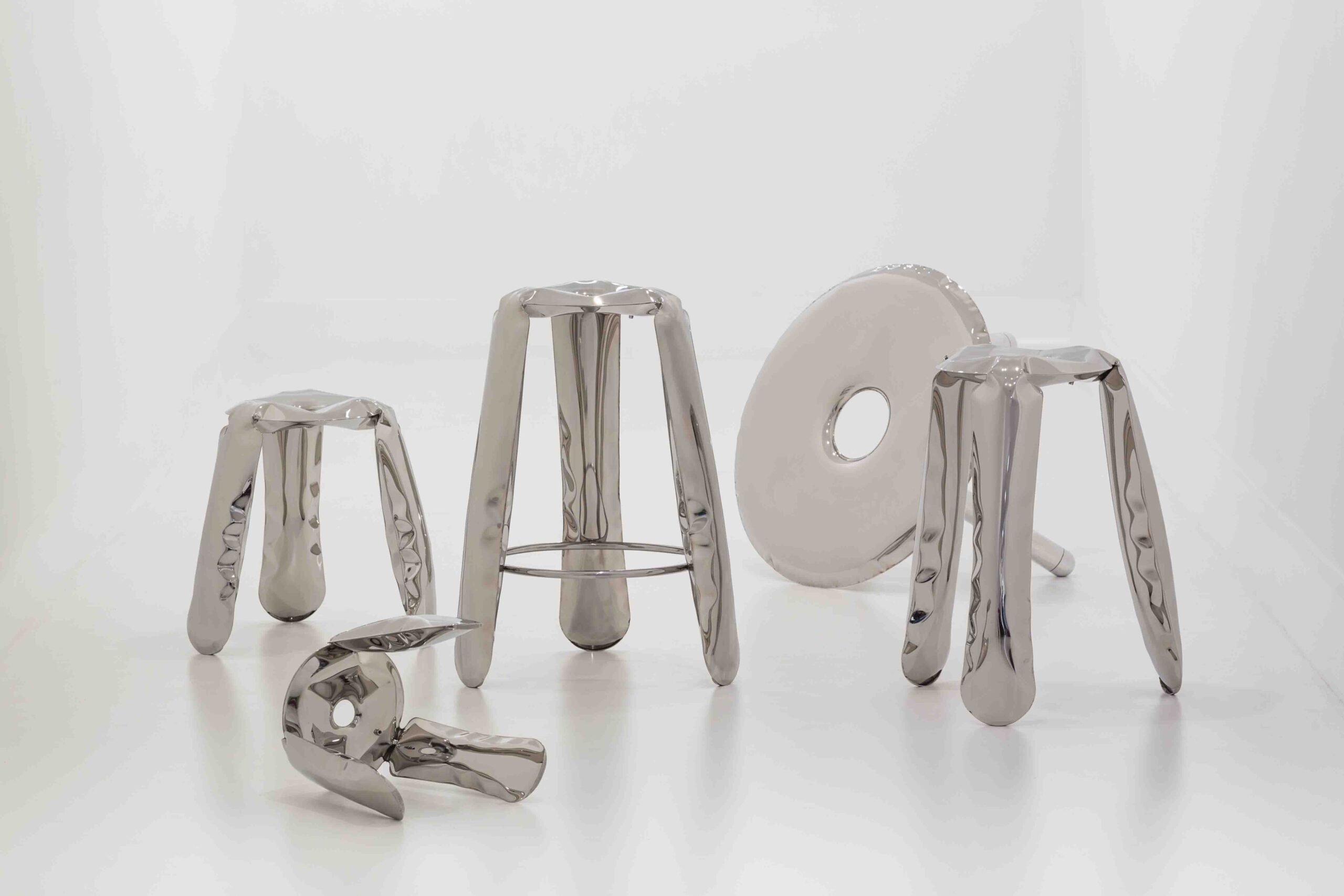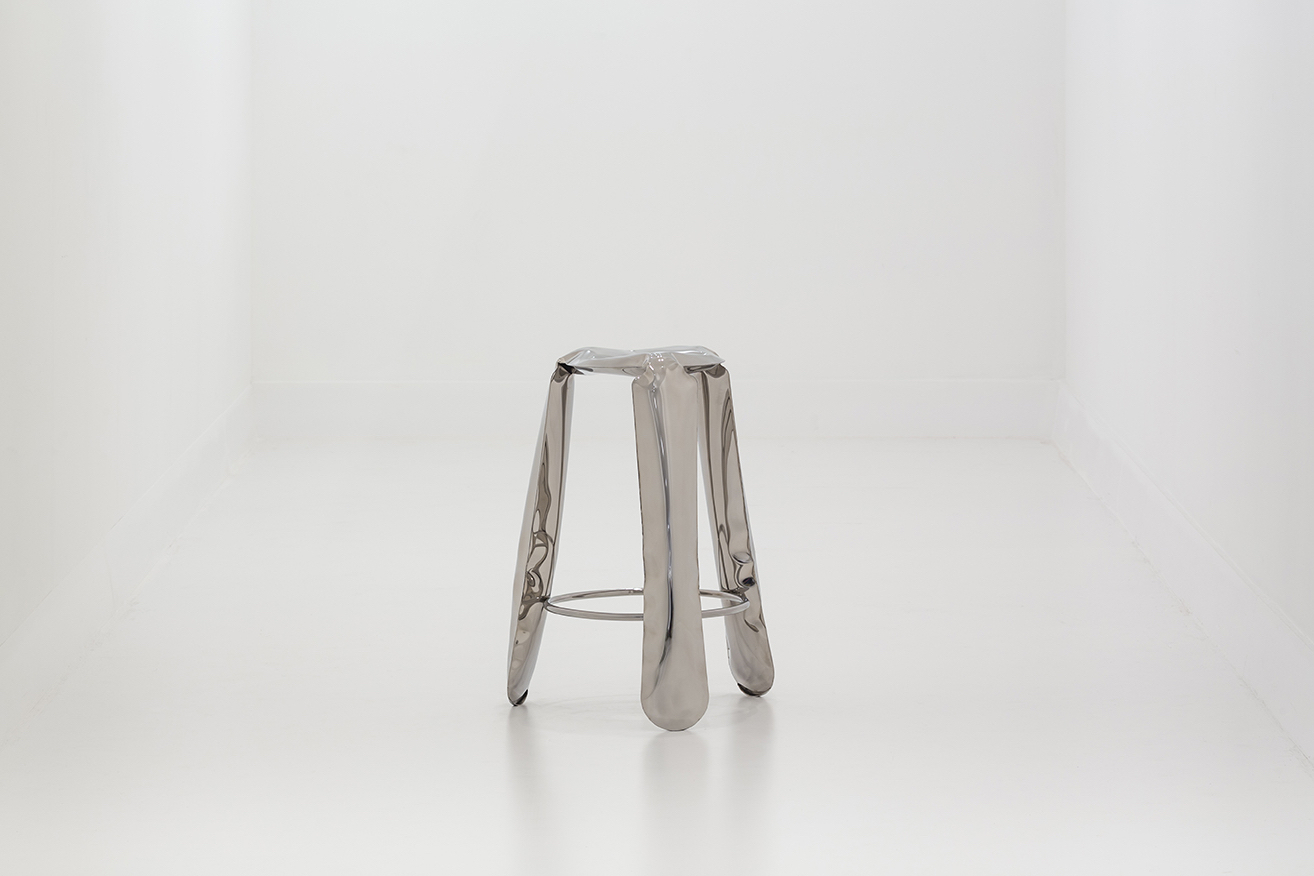 The PLOPP stool is an original, iconic object made in FiDU. It is a flagship of Zieta Studio and a symbol of Oskar Zi?ta’s research into the properties and possibilities of metal. The “Polish Air-Pumped Folk Object” proves how the artistic aspects of the design can be summarized in highly advanced engineering forms. Winner of the Red Dot Design Award 2008, the German Design Council Award 2008, and the Forum AID Award 2009. PLOPP is a manifesto of the FiDU technology and the “controlled loss of control” process. Two ultra-thin steel sheets are welded together around their edges and inflated under high pressure, deforming a 2.5D flat form into a 3D object.